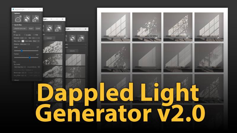 Bản cập nhật cho script Dappled Light Generator vừa được mình viết xong. Ở bản này, mọi thứ đã tối giản đi rất nhiều, chỉ tập trung vào đúng việc và tiết kiệm click chuột tối đa cho người dùng. Thêm nữa là có thêm bộ presets mới đa dạng hơn.