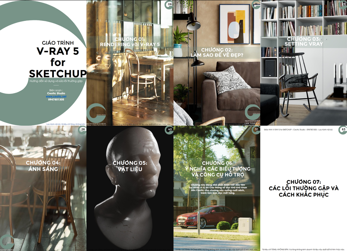 Giáo trình Vray 5 for Sketchup ở link dưới đây là một tài liệu được biên soạn như một lời cảm ơn dành cho các bạn học viên và các bạn đã yêu quý Ceotic Studio. Giáo trình gồm 10 chương, bao gồm 2 phiên bản PDF và bản in giấy, các bạn có thể tải về miễn phí tại đây: