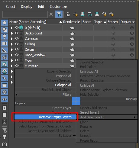 Thay vì cài thêm các script để hỗ trợ việc xóa các Layers trống thì ở các phiên bản mới gần đây của 3dsMax đã có tính năng này. Bạn chỉ cần chuột phải, xổ ra cái menu này là chọn được tính năng đó. Nhìn một bảng Layers gọn gàng bao giờ cũng sướng mắt hơn rất nhiều.