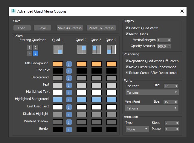 Tips nhỏ: Các bạn tạo đè nội dung mới vào cái Default Viewport Quad thì khởi động 3dsMax nó chạy luôn cái Menu này. Mình có thử tạo file mới từ Custom… nhưng nó không load được nên dùng cách này. Nếu muốn quay lại mặc định thì trước khi chỉnh các bạn lưu riêng file gốc ra trước là được.