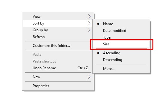 - Trong folder của Window, chọn hiển thị cái nào dung lượng cao lên trước để xử lý trước